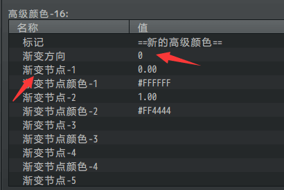 DEBUG窗口字符如下图,红色的点为中心点,紫色的点为渐变方向。
