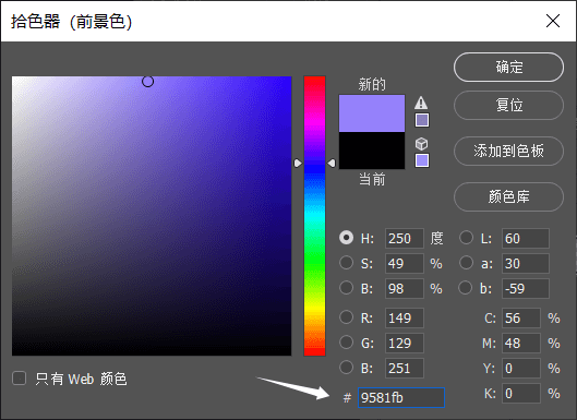 这里我们选择一个颜色,选淡紫色吧。(#9581fb)