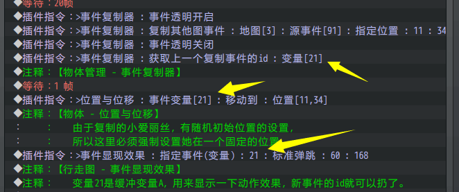如果你需要对新事件进行插件指令操作,那么你必须在复制它之后,存储它的id编号。