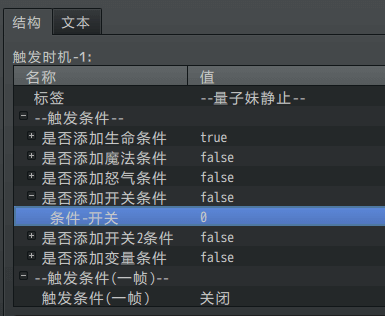 触发时机与事件页的功能相似,有先后顺序,序号越大,优先级越高。