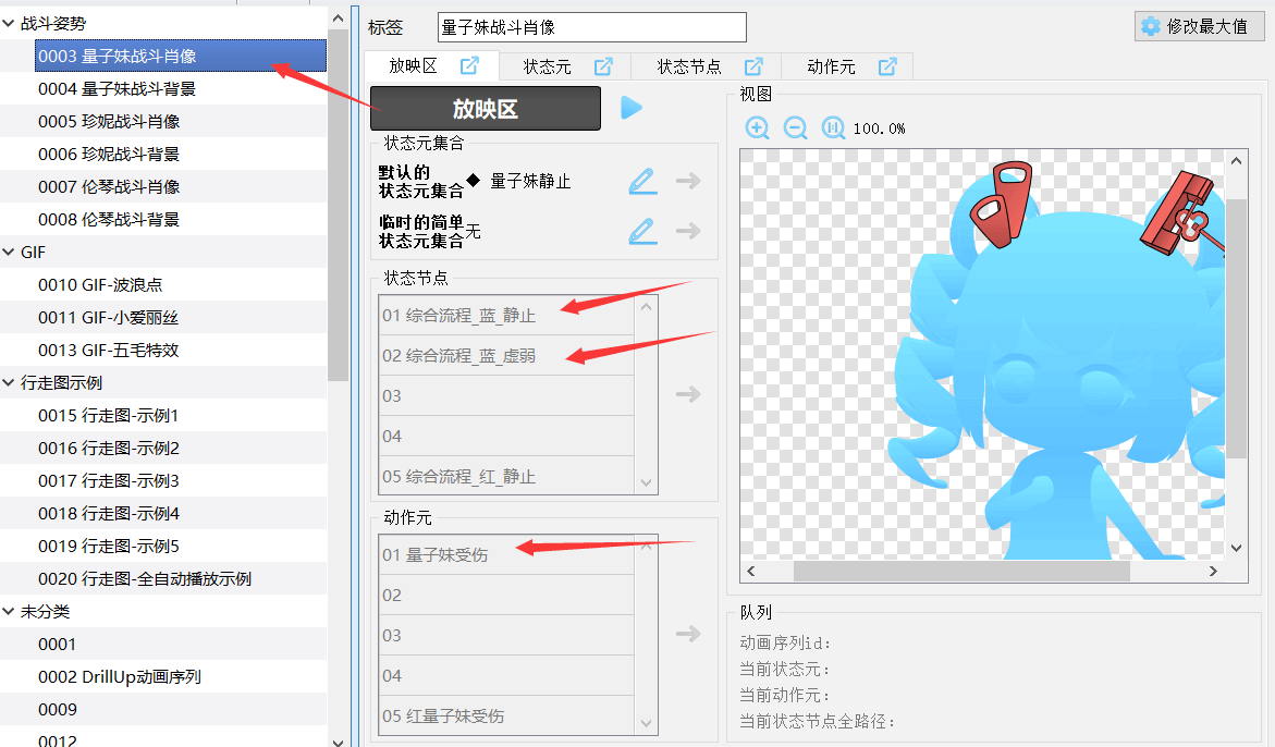 设置优先级这样可以 避免 红量子妹状态时误播放 (蓝)量子妹受伤 的动作。