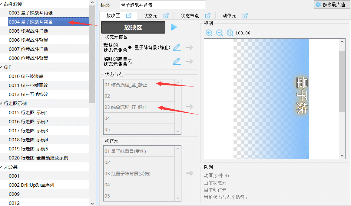 由于高级角色肖像插件中,分为 前视图 和 背景图,这两个都是GIF动画序列。