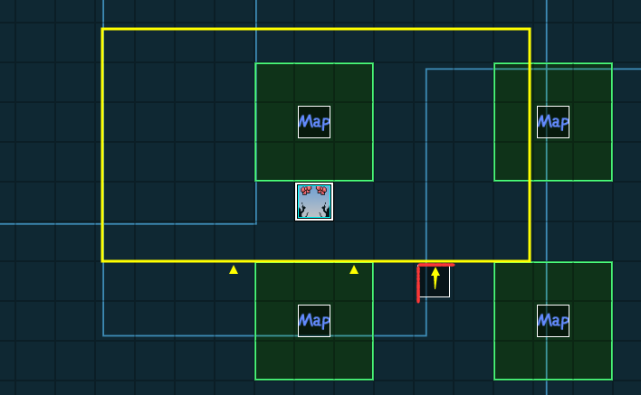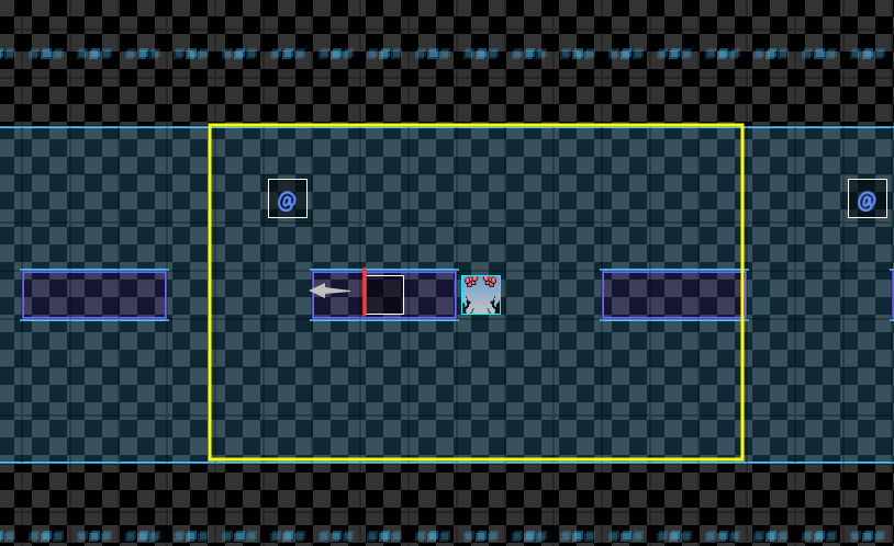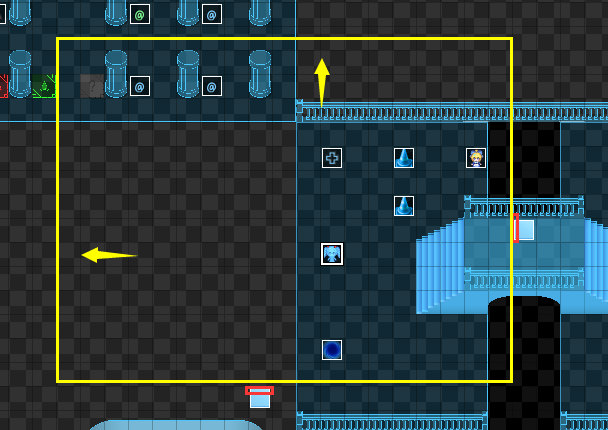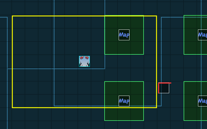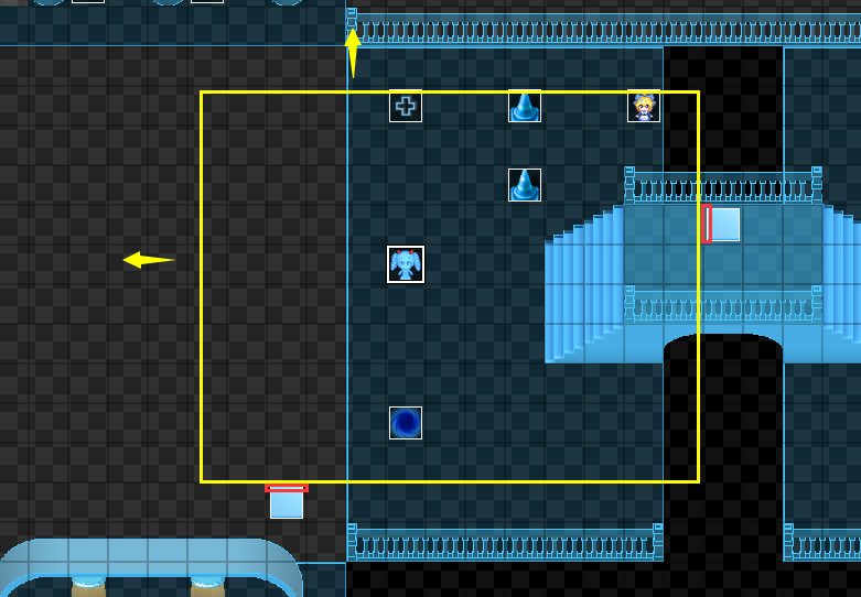 以向上的墙为例,当镜头看到了指定的墙(红色部分),那么镜头就会被事件的镜头墙顶起。因为,玩家在上墙的上边,会被墙阻挡,只要在上墙的下面,墙就失效。