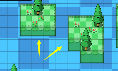 并且,两种图块画的小岛,你能隐约感觉到两个岛的高度不一样。