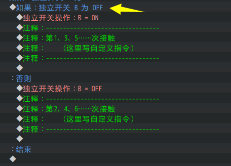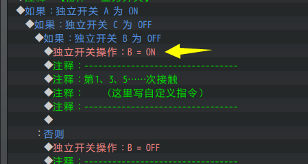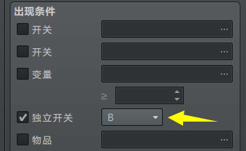 即可实现 “独立开关A+B都为ON” 的出现条件功能。