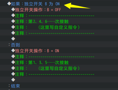 手拉的开关,直接执行开启独立开关即可。(第二页则执行 关闭独立开关)