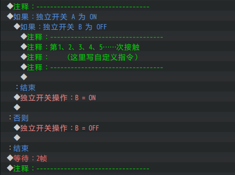 一个最基本的注释如下图所示。(并行处理,等待5秒之后,关闭独立开关)