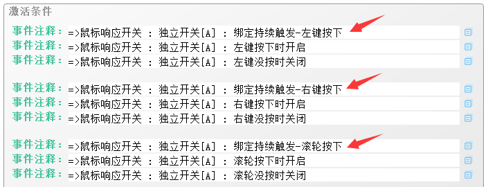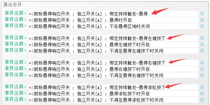 一般用于某些情况就会自动开启的事件。比如鼠标响应开关、重力开关等。