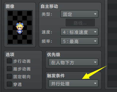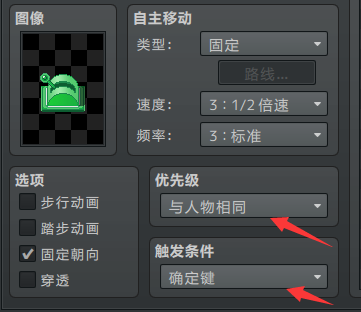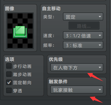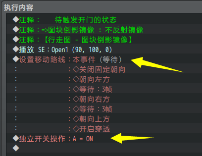 因此门必须固定朝向,避免从里面出来时,门事件朝向玩家,造成行走图突然改变。