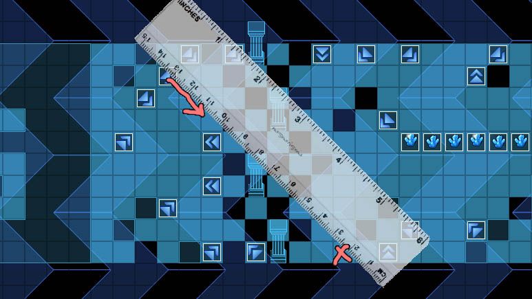 如果单纯靠眼力判断滑行的方向,是不太准的,这时候需要使用物理尺子,放在在目标图块上进行笔画。