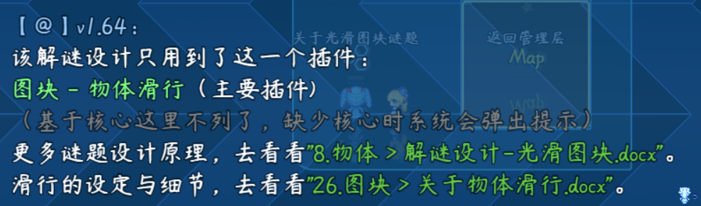 物体滑行的具体细节,可以去看看文档“26.图块 > 关于物体滑行.docx”。