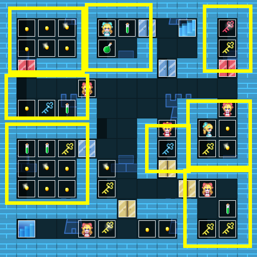 再如下图,1个敌人(-1生命) 或 1把黄钥匙 可以换 1把蓝钥匙。