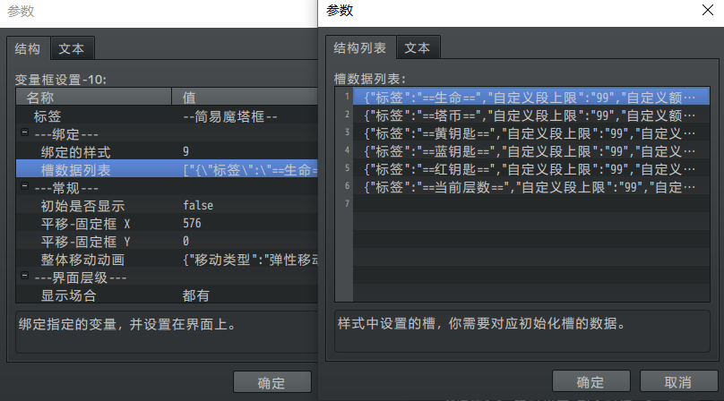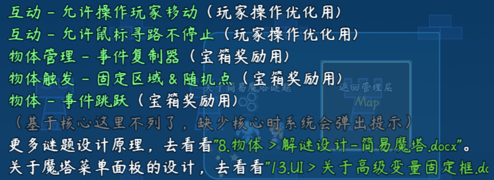 简易魔塔的UI面板设计,可以去看看文档“13.UI > 关于高级变量固定框.docx”。