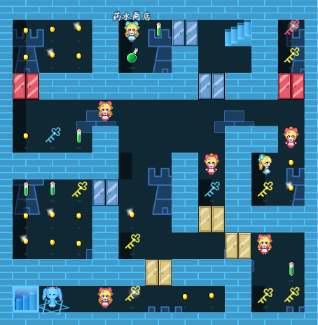 红黄蓝钥匙/红黄蓝门、塔币、敌人/药水、商店/NPC、楼梯