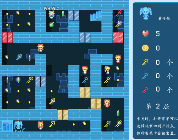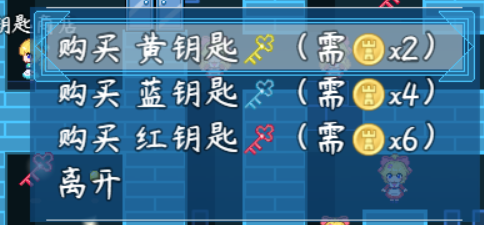这里分为 药水商店、钥匙商店 以及 分散在简易魔塔里的各种一次性NPC商店。