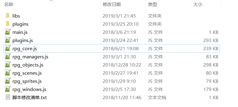 Rmmv的所有核心脚本都在js文件夹下,js文件夹下的目录结构如下图: